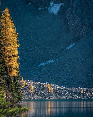 The Golden Larches are found all over the North Cascades (usually plentiful on the easter slopes of the mountain). They are green throughout a majority of the year, but begin to die off and leave a very golden yellow, then eventually the pines fall off for the winter. Unlike usual fall foliage, these can only be found in high altitude environments. Take that, North East United States...