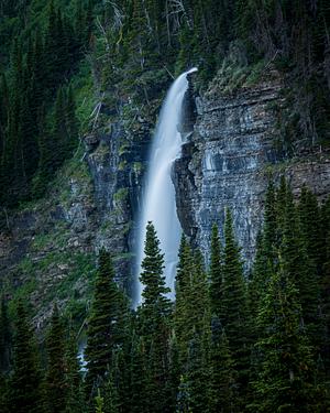 Waterfalls are all over Glacier National Park. This is due to the large amount of Glacier melting across the years. This photo was captured to show the one waterfall that stood out among the rest of the scenery.